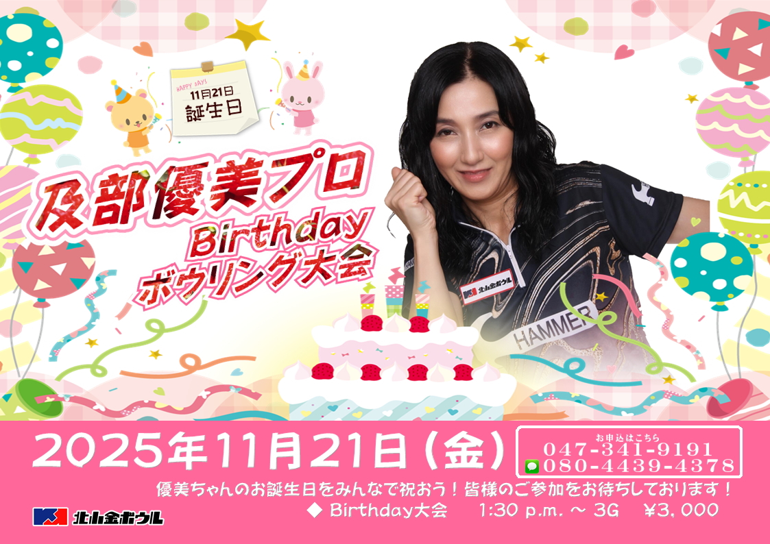 11/21(金) PM1:30~ 及部優美プロバースデーボウリング大会(昼の部)