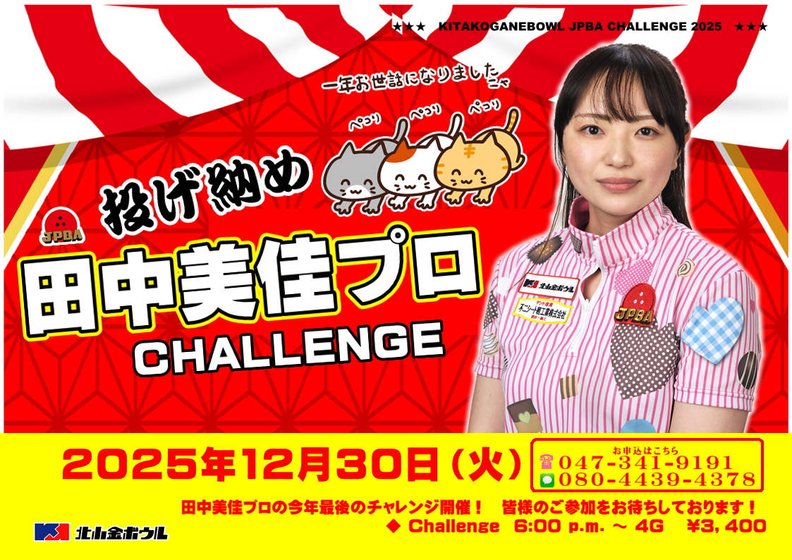 12/30(火) PM6:00~ 田中美佳プロ投げ納めチャレンジ