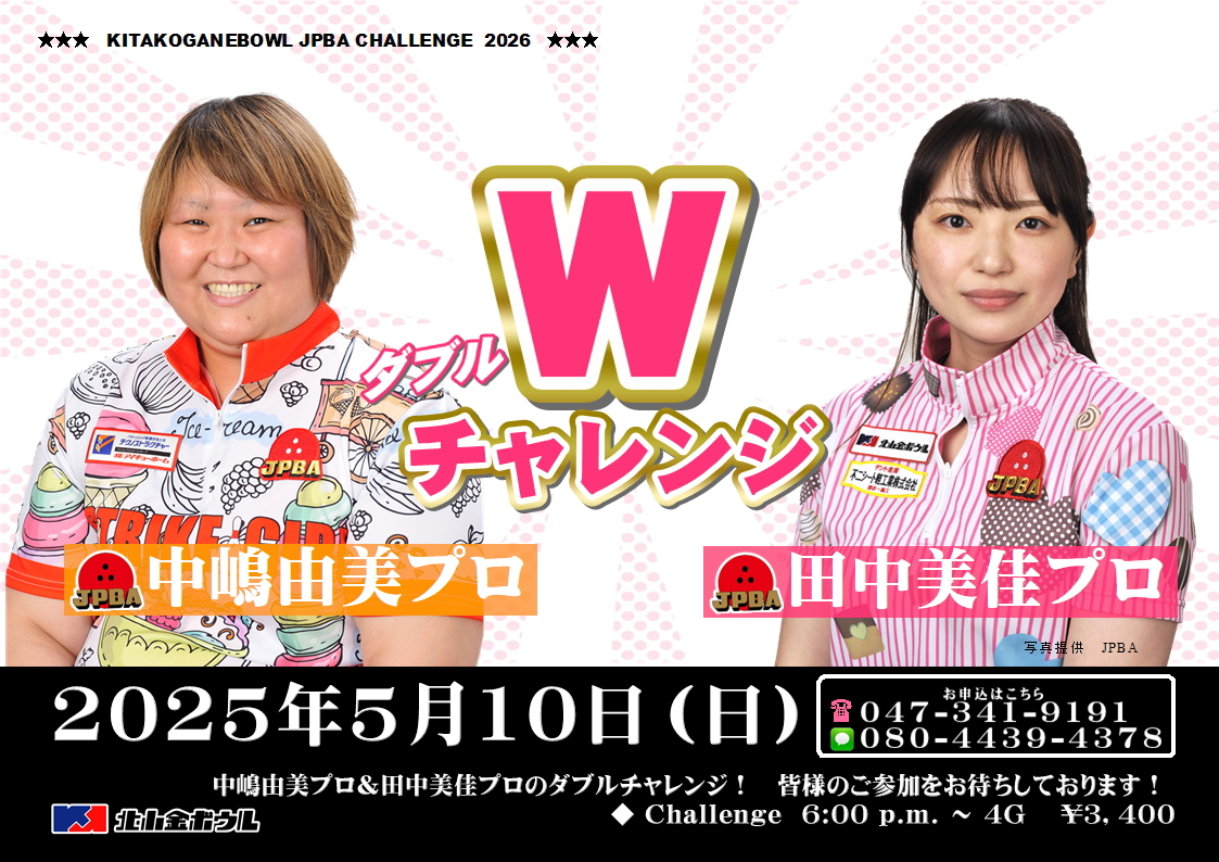 5/10(日) PM6:00~ 中嶋由美プロ&田中美佳プロ Wチャレンジ