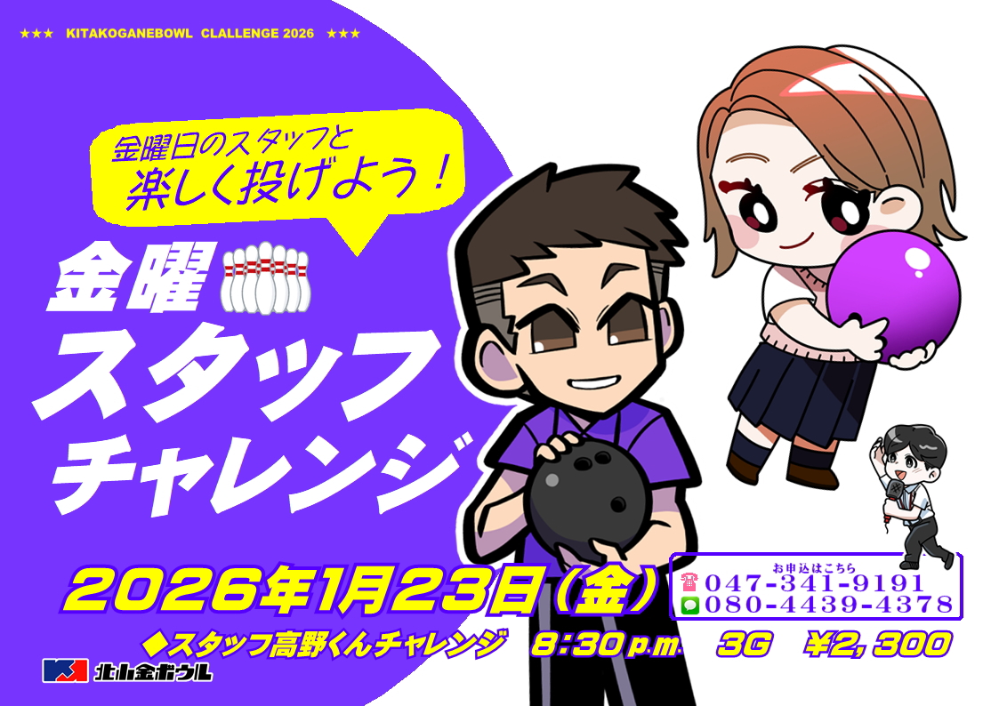 月曜日&水曜日 夜7時15分~ 山崎行夫プロボウリング教室