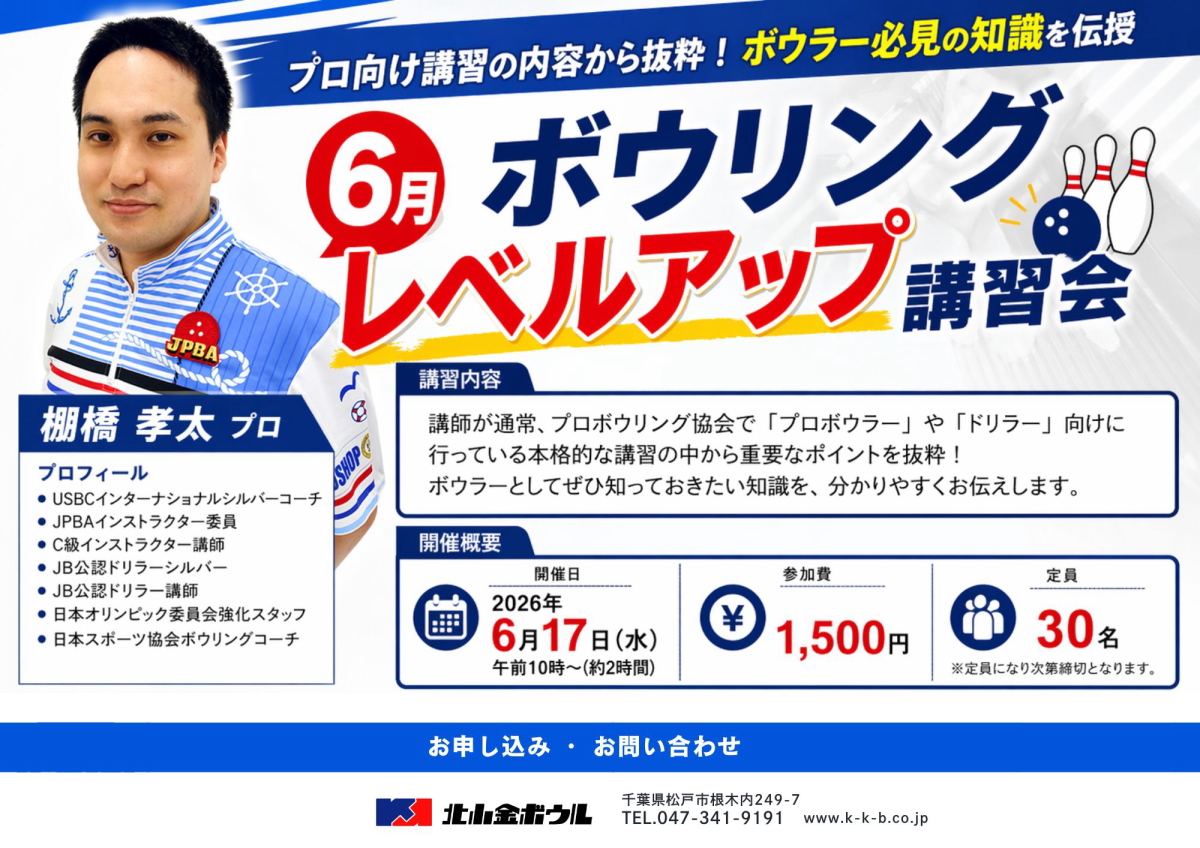 6/17(水) AM10:00~ 棚橋孝太プロの 「6月ボウリングレベルアップ講習会」