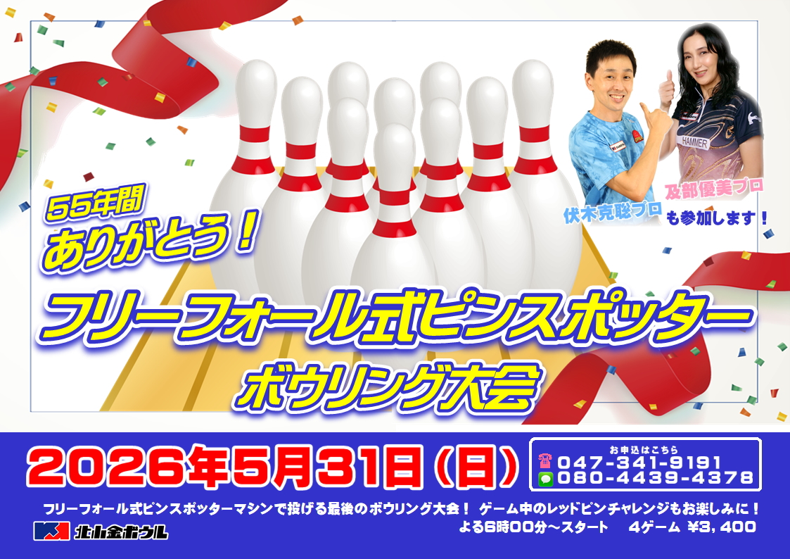 5/31(日)フリーフォール式ピンスポッターボウリング大会